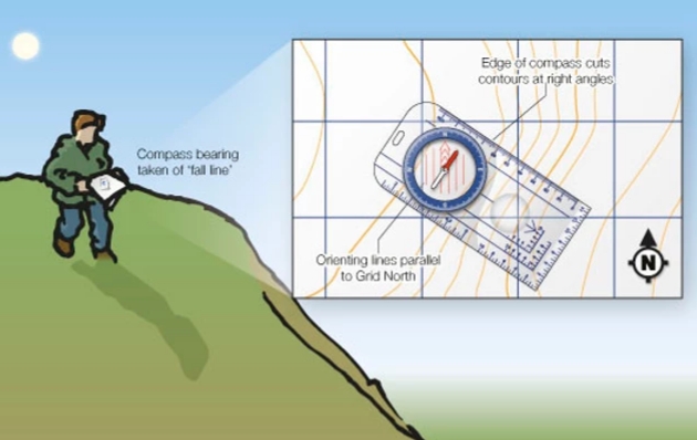 Once you are on the hill you will need to identify prominent features on the ground such as hills, ridges, valleys and tracks (maybe there's a village within view) and turn the map so