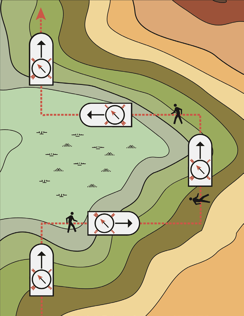 In good visibility you may be able to set the map by eye. If you've just set off from your car you will probably be able to set the map by using the road and another linear feature such as a path.